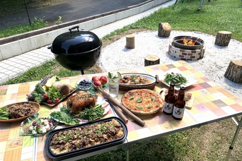 ※バーベキュー機材一式貸出料 1名あたり300円/日(バーベキューコンロ、網、鉄板、椅子、テーブル)